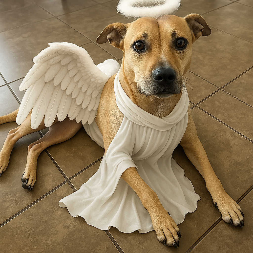 In this whimsical photo, a delightful pet floats through a dreamy, celestial scene dressed as the sweetest little angel. With soft, feathery wings spread wide and a shimmering halo perched above their head, they strike a heavenly pose on a puffy white cloud. Their flowing robe sparkles in the light, and their eyes shine with love and just a hint of mischief—because even angelic pets can be playful! Golden rays and twinkling stars surround them, creating a magical glow that feels straight out of a fairytale. But this angel has a mission beyond cuteness: they’re inviting you to join in the fun! “Want to see your pet as a heavenly little furball like me?” their expression seems to ask. Whether your pet is a dog, cat, or something delightfully unique, upload their photo and let them shine in their very own angelic portrait. Wings, halo, and heart-melting charm included!