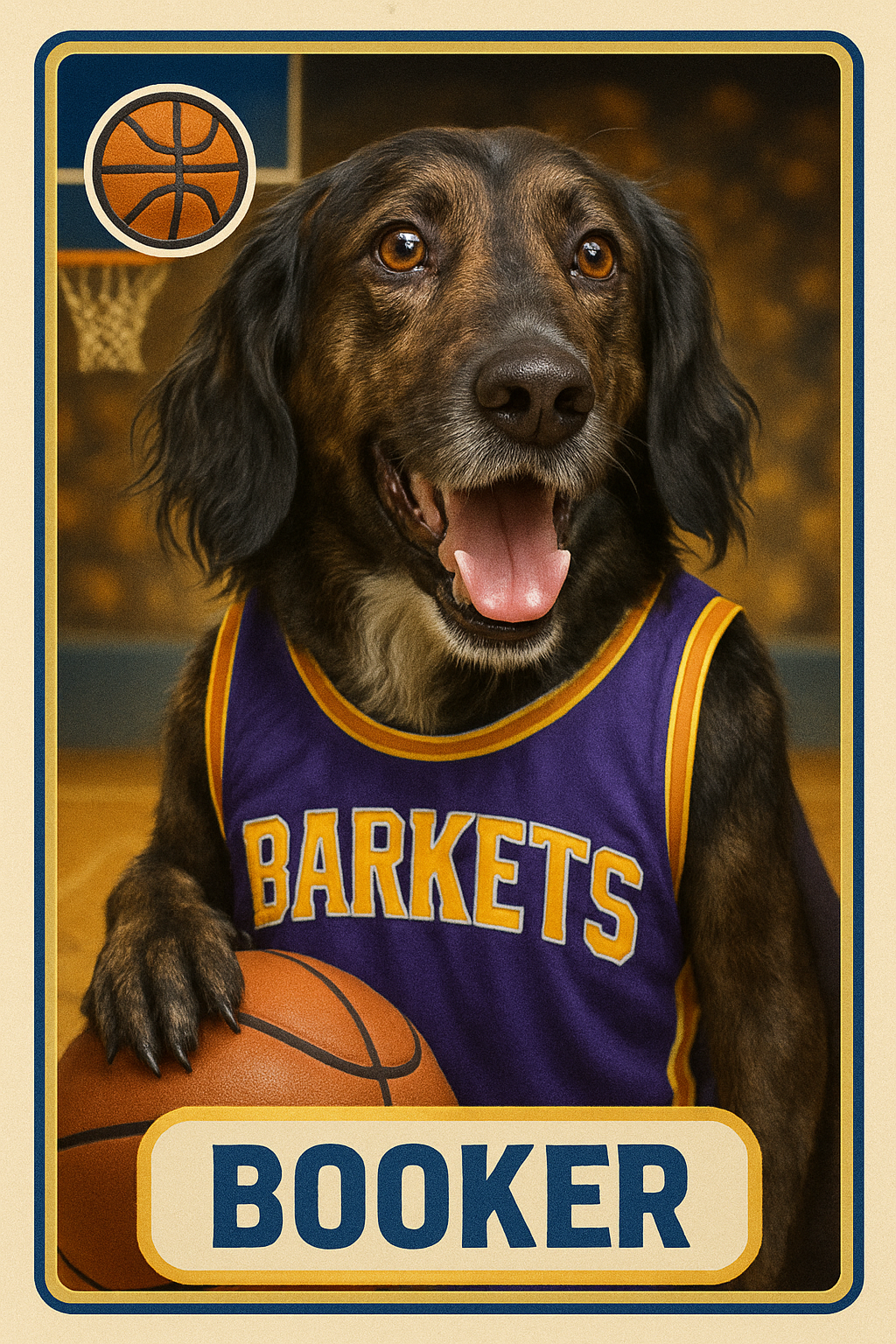 Step up to the plate with our one-of-a-kind Pet Basketball Card! This nostalgic collector’s piece features a classic, vintage design with bold colors, playful stats, and an MVP-worthy portrait of a furry friend. But here’s the real magic—imagine your own pet taking center stage on this card! Whether it’s a playful pup, a curious cat, or any beloved companion, the design transforms into a personalized keepsake that celebrates their unique personality. More than just a card, it’s a fun way to honor your best friend and share their charm with others. Make your pet the star of the game today!