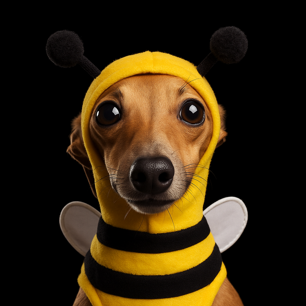 Now imagine your pet dressed as a bumblebee — wearing a striped yellow-and-black outfit, with delicate little wings perched on their back, and two springy antennae bobbing above their head. A whimsical photo like this turns your furry friend into a busy little bee, full of charm, mischief, and absolutely paw-some buzz-worthy fun!