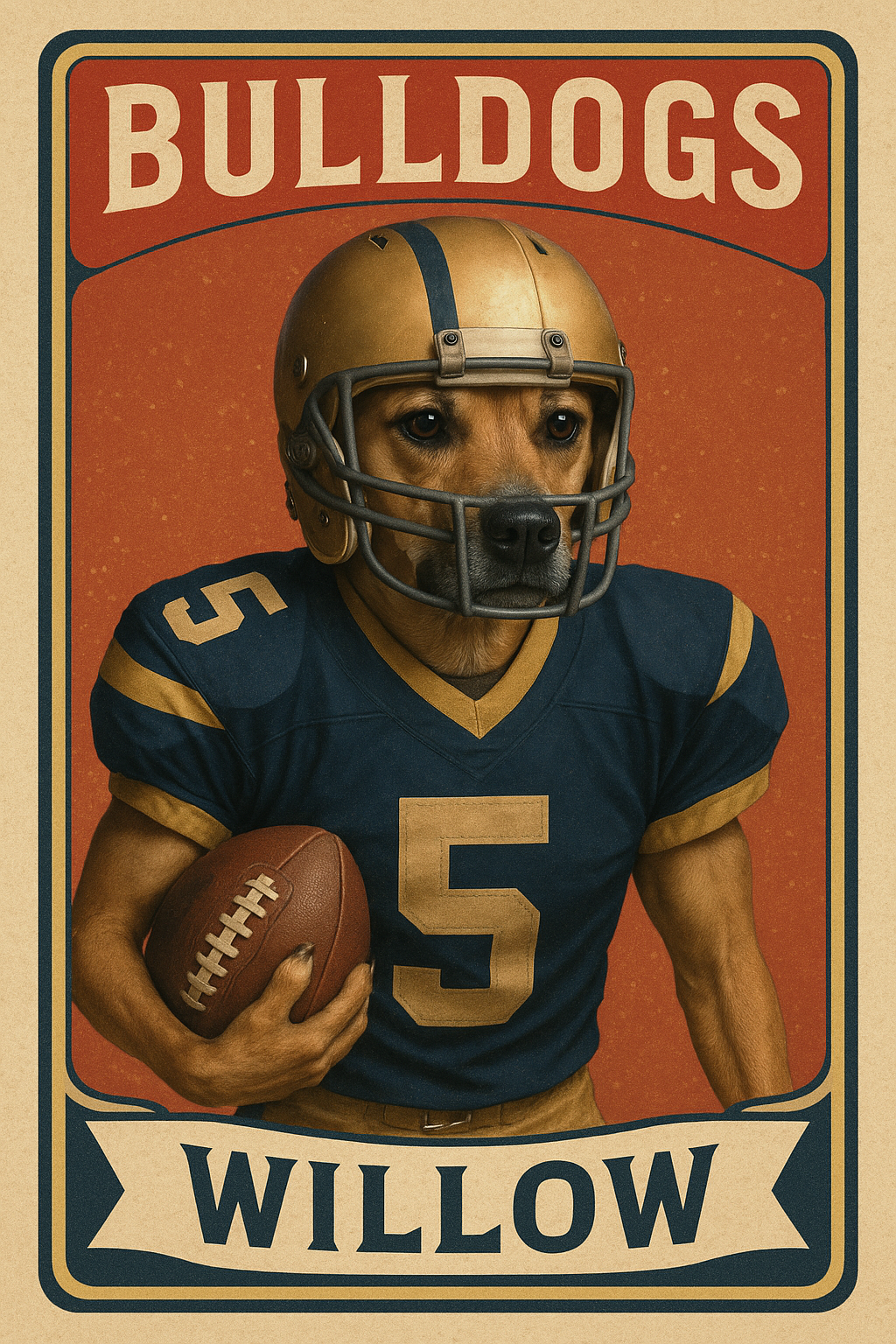 Step up to the plate with our one-of-a-kind Pet Football Card! This nostalgic collector’s piece features a classic, vintage design with bold colors, playful stats, and an MVP-worthy portrait of a furry friend. But here’s the real magic—imagine your own pet taking center stage on this card! Whether it’s a playful pup, a curious cat, or any beloved companion, the design transforms into a personalized keepsake that celebrates their unique personality. More than just a card, it’s a fun way to honor your best friend and share their charm with others. Make your pet the star of the game today!