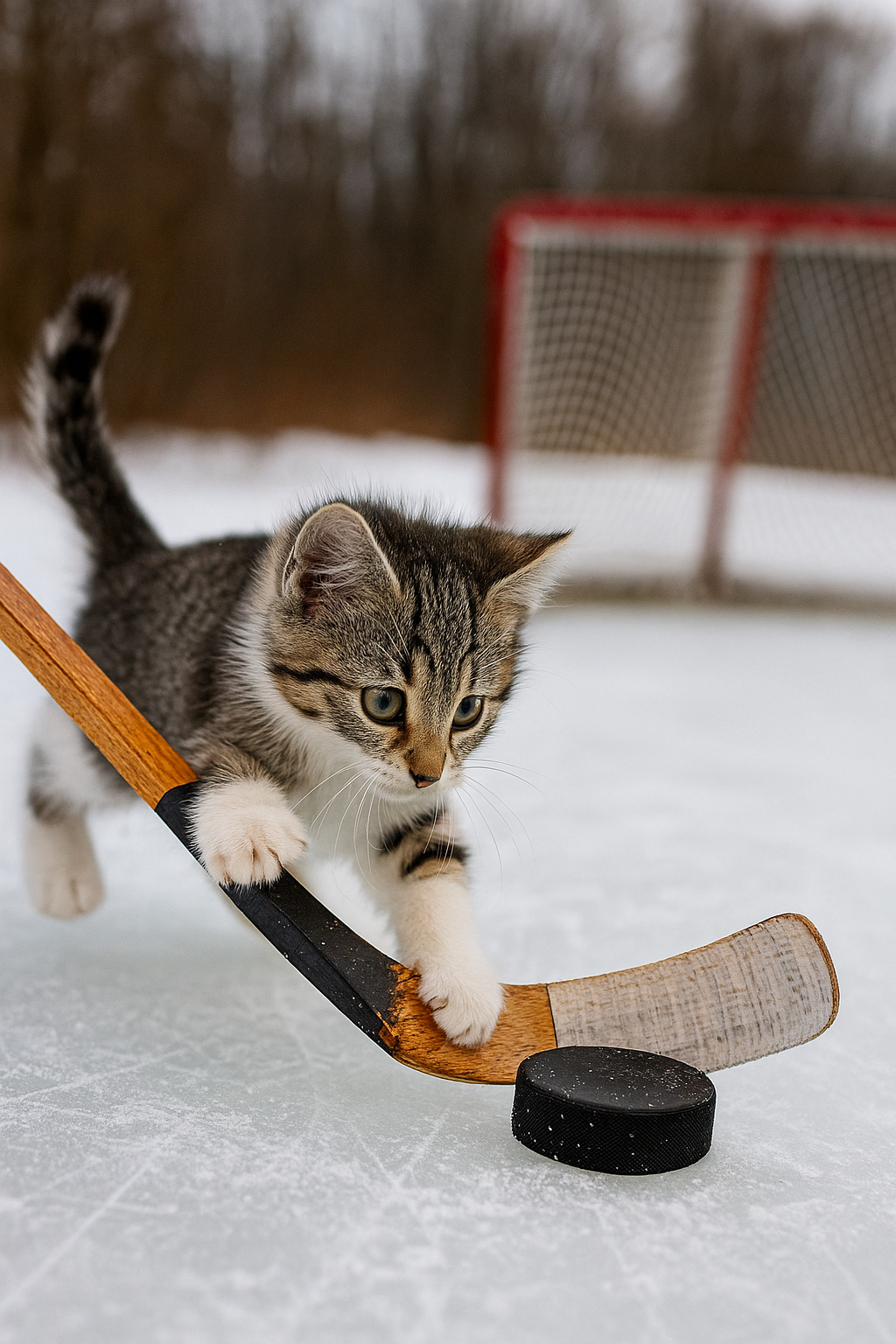 Now imagine your pet joining the fun — wearing a tiny hockey jersey, a snug little helmet, and holding a mini stick while standing confidently on the “ice.” Their eyes locked on the puck, tail wagging with excitement, and maybe even a tiny goal behind them. A whimsical photo like this transforms your furry friend into a paws-itively adorable hockey superstar — energetic, determined, and full of icy charm. It’s the kind of photo that brings instant joy and makes everyone say, “That’s the cutest hockey player I’ve ever seen!”