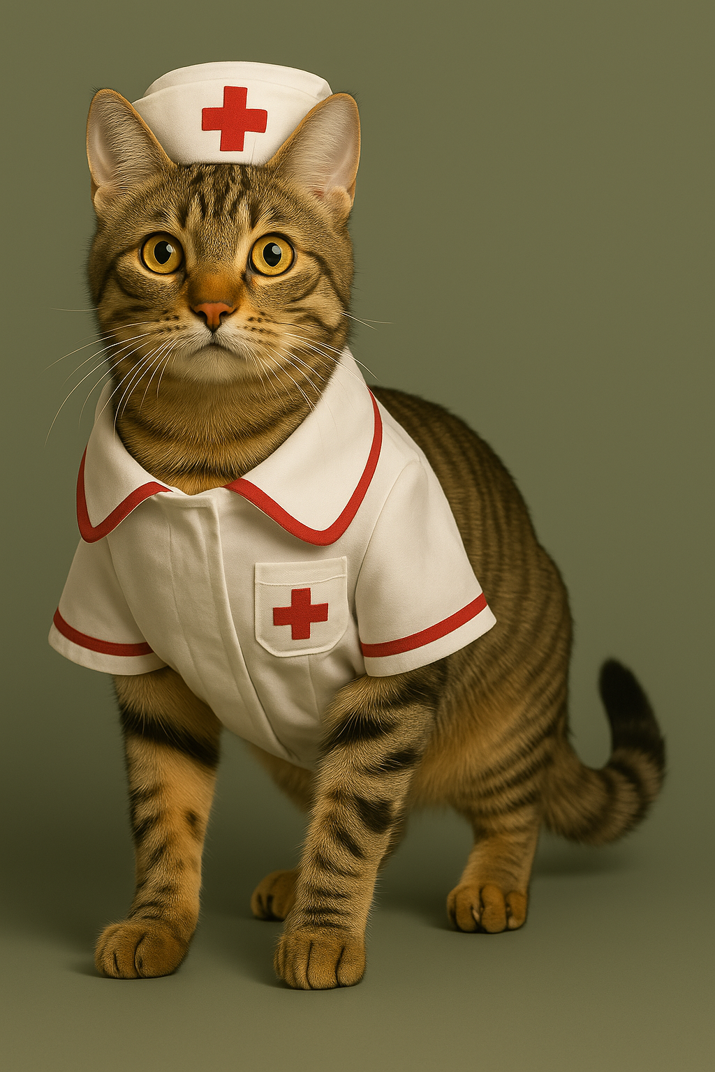 Now imagine your pet in this adorable uniform — wearing a crisp little nurse hat perched on their head, a tiny medical bag by their side, and striking a “ready-to-help” pose with big, loving eyes. A whimsical photo like this turns your furry friend into the most paw-some nurse around — full of care, kindness, and irresistible cuteness!