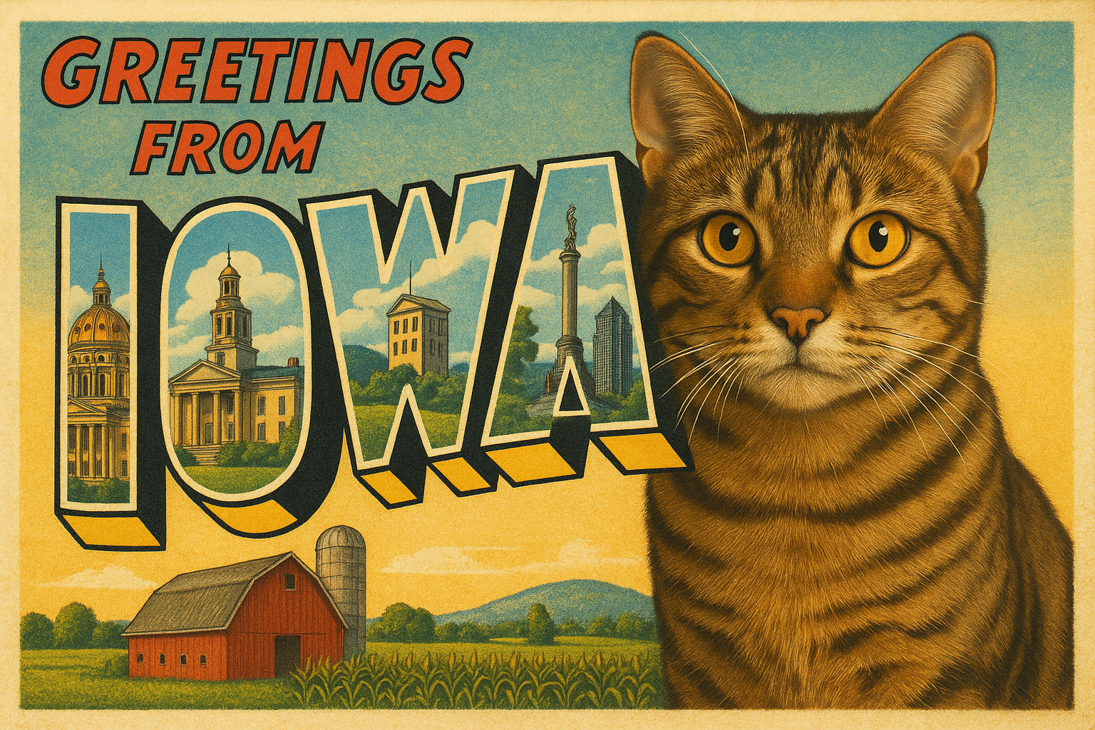 Iowa is part of the postcards collection.