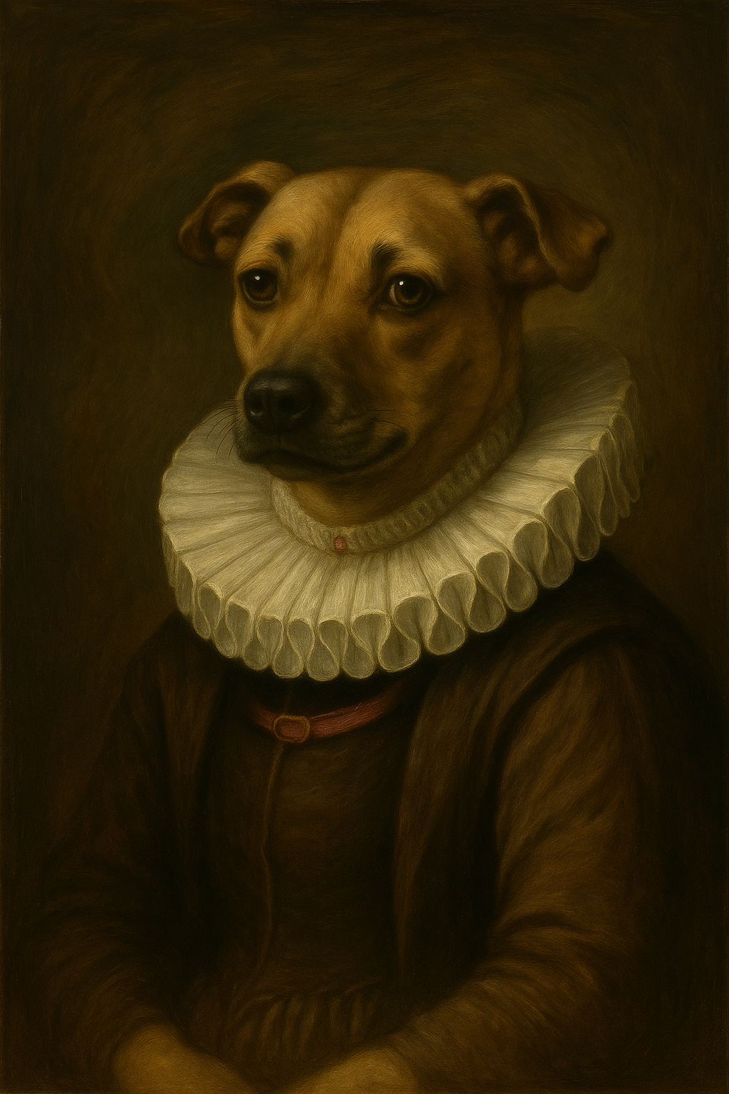Now imagine your pet dressed in full Victorian splendor — wearing a beautifully detailed gown or tailored suit, complete with dainty lace trim, a tiny hat perched just right, and striking a poised, proper “portrait pose” with big, curious eyes. A whimsical photo like this turns your furry friend into a paws-itively sophisticated Victorian darling — graceful, playful, and absolutely paw-some in every elegant detail!